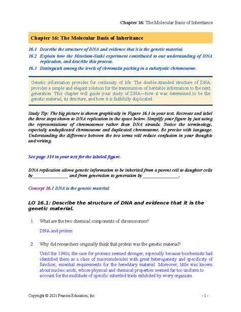 Chapter 16 The Molecular Basis Of Inheritance Answer Key