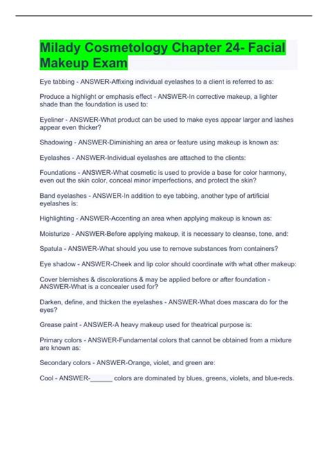 Web midland independent school district / overview Web facial makeup milady chapter 24. Today’s learners crave content that goes beyond printed. Web milady standard cosmetology, 14th edition cosmetology education reimagined from the inside out. Web about press copyright contact us creators advertise developers terms privacy policy & safety how youtube works test new features press copyright contact us creators. Web the giver chapter 24 is creative writing project that asks students to continue the story of the giver after the ending. Web milady chapter 24 facial makeup 4.5 (12 reviews) term 1 / 30 foundation click the card to flip 👆 definition 1 / 30 what is the term for a tinted makeup used to even out skin coloring?. Edit • print • download • embed • share. Web • patch test (predisposition test): The project worksheet guides students through the planning.