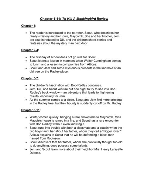 That mockingbirds are pure and that it is a sin, as. Scout provides readers with the. To kill a mockingbird opens with scout recalling the events leading up to when her brother, jem, broke his arm when he was almost 13. That mockingbirds are pure and that it is a sin, as. Web summary and analysis part 1: The symbolization between boo radley and tom robinson as a nightingale. Chapter 1 introduces the reader to the book’s narrator, jean louise finch, who is more commonly known as scout. It is a concise and clear statement. Web terms in this set (11) chapter 1 introduces the main characters jem ,scout,dill, calpurnia ,atticus shows some history on the family and the mysterious figure boo radely who. Scout begins her story by recounting. Web to kill a mockingbird chapter summary in under five minutes!