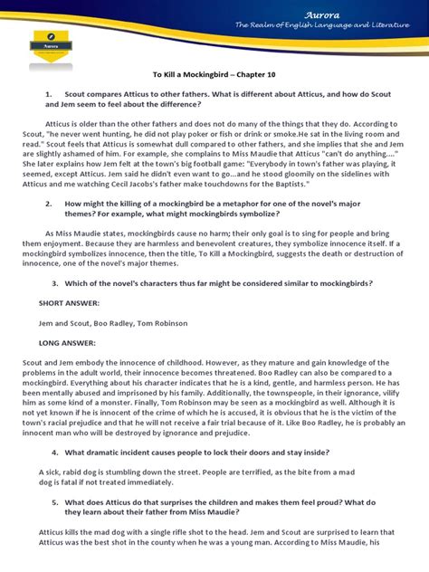 To Kill A Mockingbird Chapter Questions And Answers Pdf